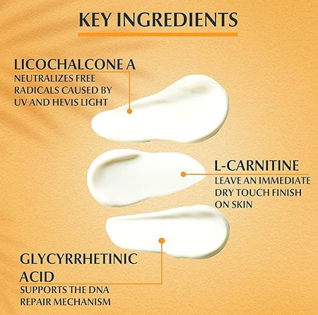 ENRICHED WITH LICOCHALCONE A AND GLYCYRRHETINIC ACID: The formula contains Licochalcone A, which neutralizes free radicals caused by UV and HEVIS light, while Glycyrrhetinic Acid supports skin’s DNA repair mechanism to help fix sun damage.