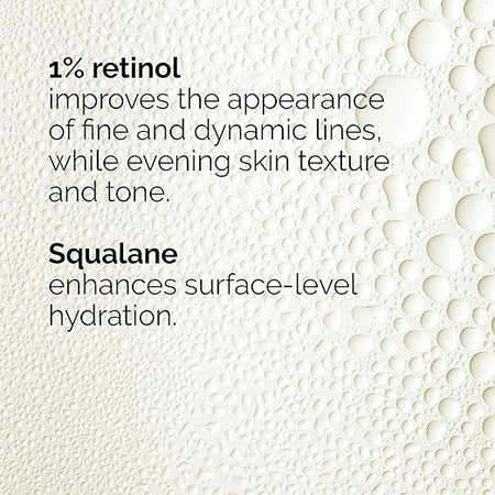 Retinol 1% in Squalane offers a water-free solution containing 1% retinol—an ingredient that improves the appearance of fine and dynamic lines that arise from a loss of collagen and elastin, while evening skin texture and tone. What’s more, this expert-level formula is supported with squalane, a moisturizing agent naturally found in your skin that enhances surface-level hydration and helps combat the dryness that can be associated with retinol use.